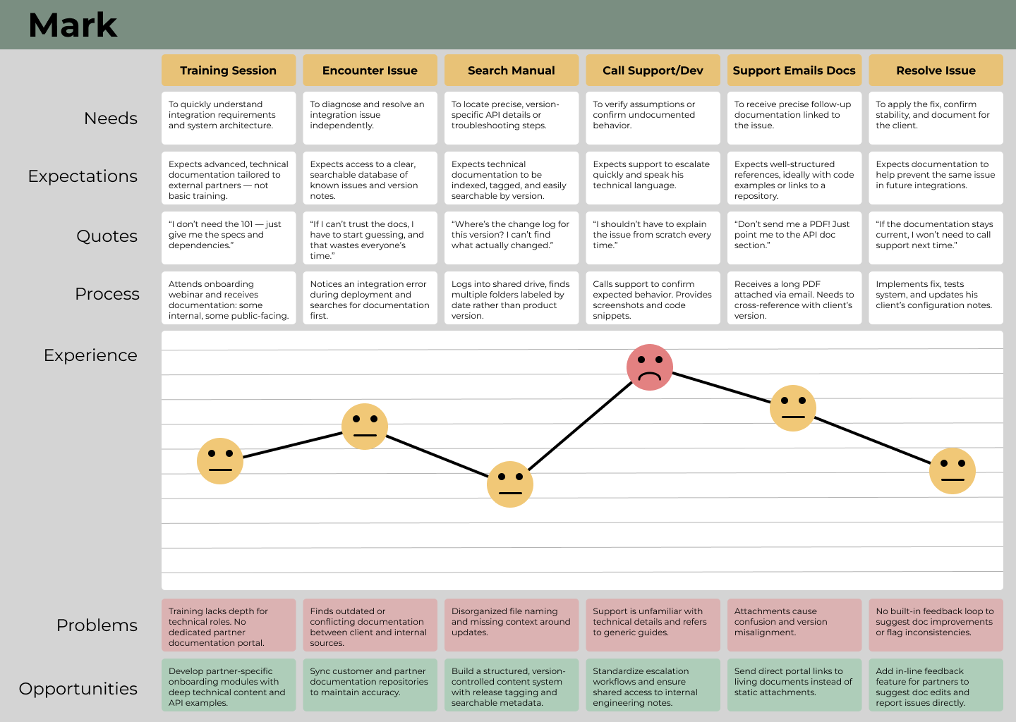 Each audience followed the same sequence, but visibility varied by persona. Customers saw only their relevant guides, while support reps and partners accessed the full ecosystem.