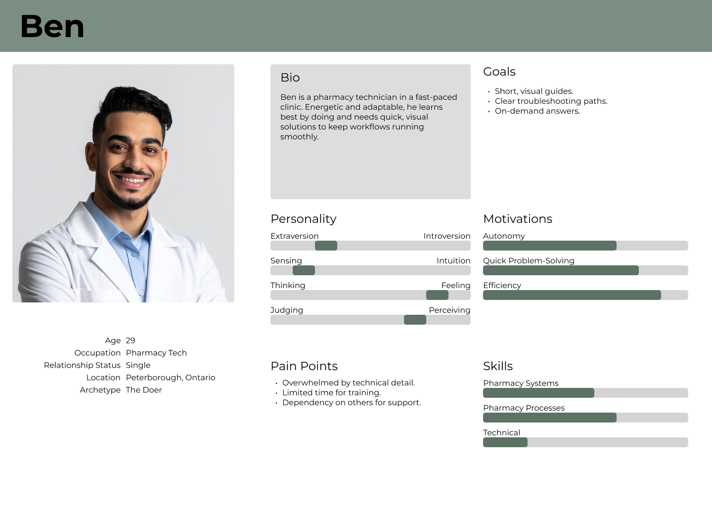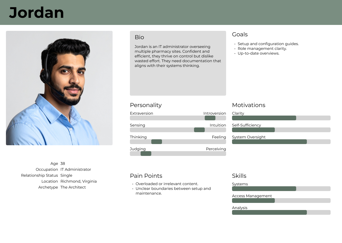 Even within the customer group, multiple personas existed, pharmacists, pharmacy techs, and IT staff, each with distinct visibility and needs.