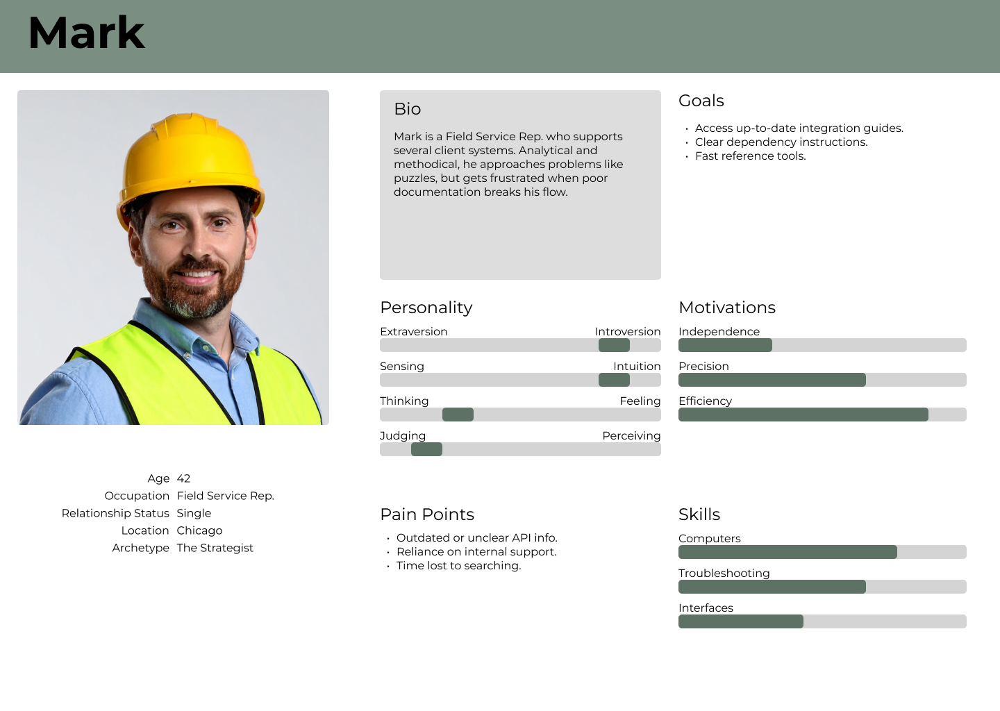 Service Partners - external technicians who needed reliable integration and troubleshooting guides.
